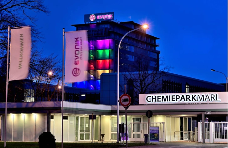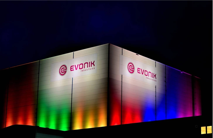 Auch die Evonik Logistics Services GmbH beteiligt sich: Das bunt angestrahlte Hochregallager ist von Weitem zu erkennen.