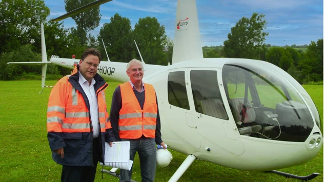 Jörg Pläster (l.) verlässt das Unternehmen nach fast 50 Jahren. Viele Projekte durfte der 64-Jährige in dieser Zeit umsetzen - hier kurz vor einem Helikopterflug zur Begutachtung einer neuen 400-Kilometer-Pipeline.