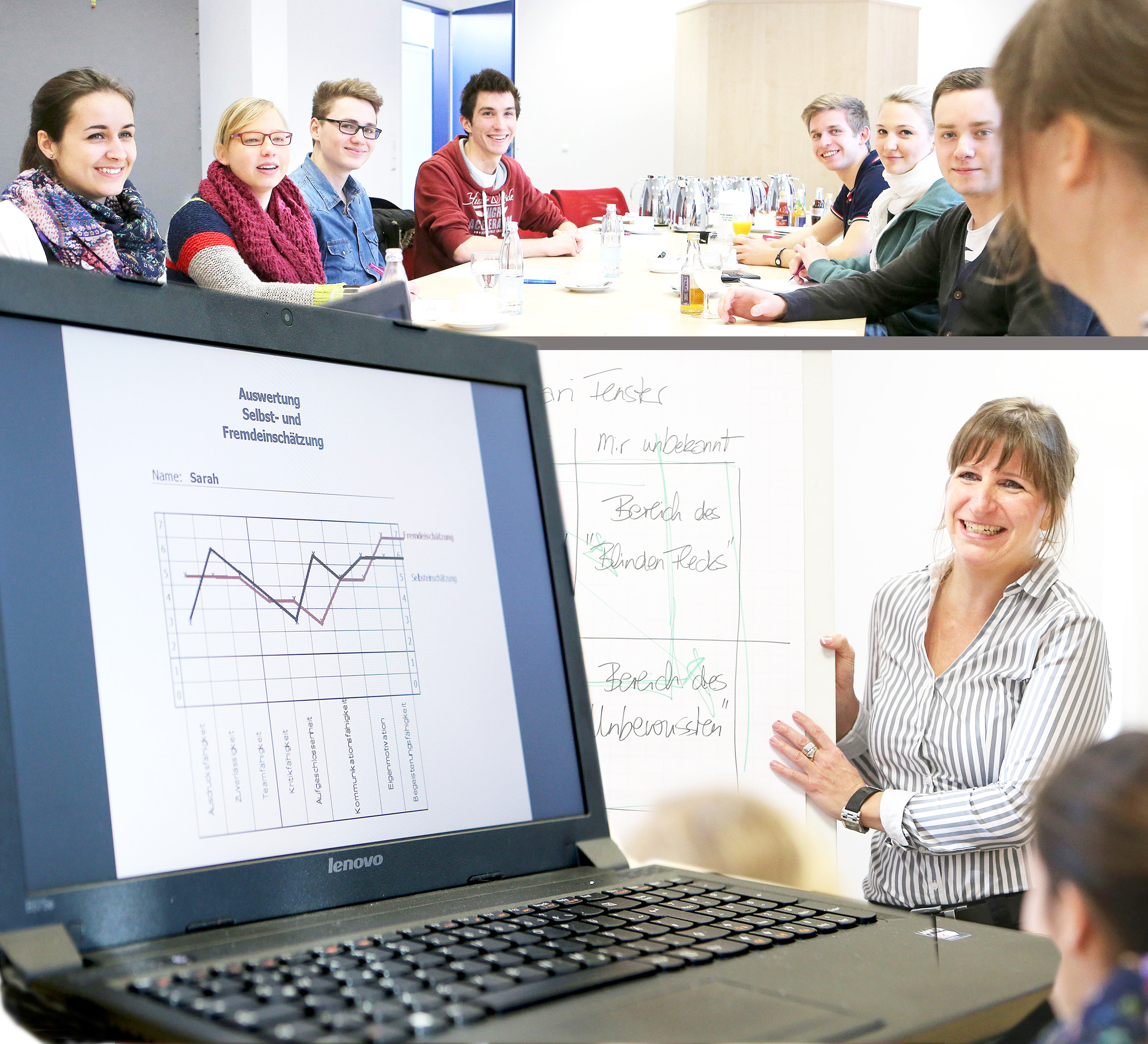 Sie kommt bei den jungen Leuten gut an. In lockerer Atmosphäre sprechen die Auszubildenden, die alle das Angebot spontan angenommen haben, über Überraschungen, die schon zu Beginn des Seminars eintreten. Bei der Selbst- und Fremdeinschätzung gibt es nicht selten ein ordentliches Delta. „Diese Reflexion bringt mich ein gutes Stück nach vorn“, glaubt Marius Wagner.
