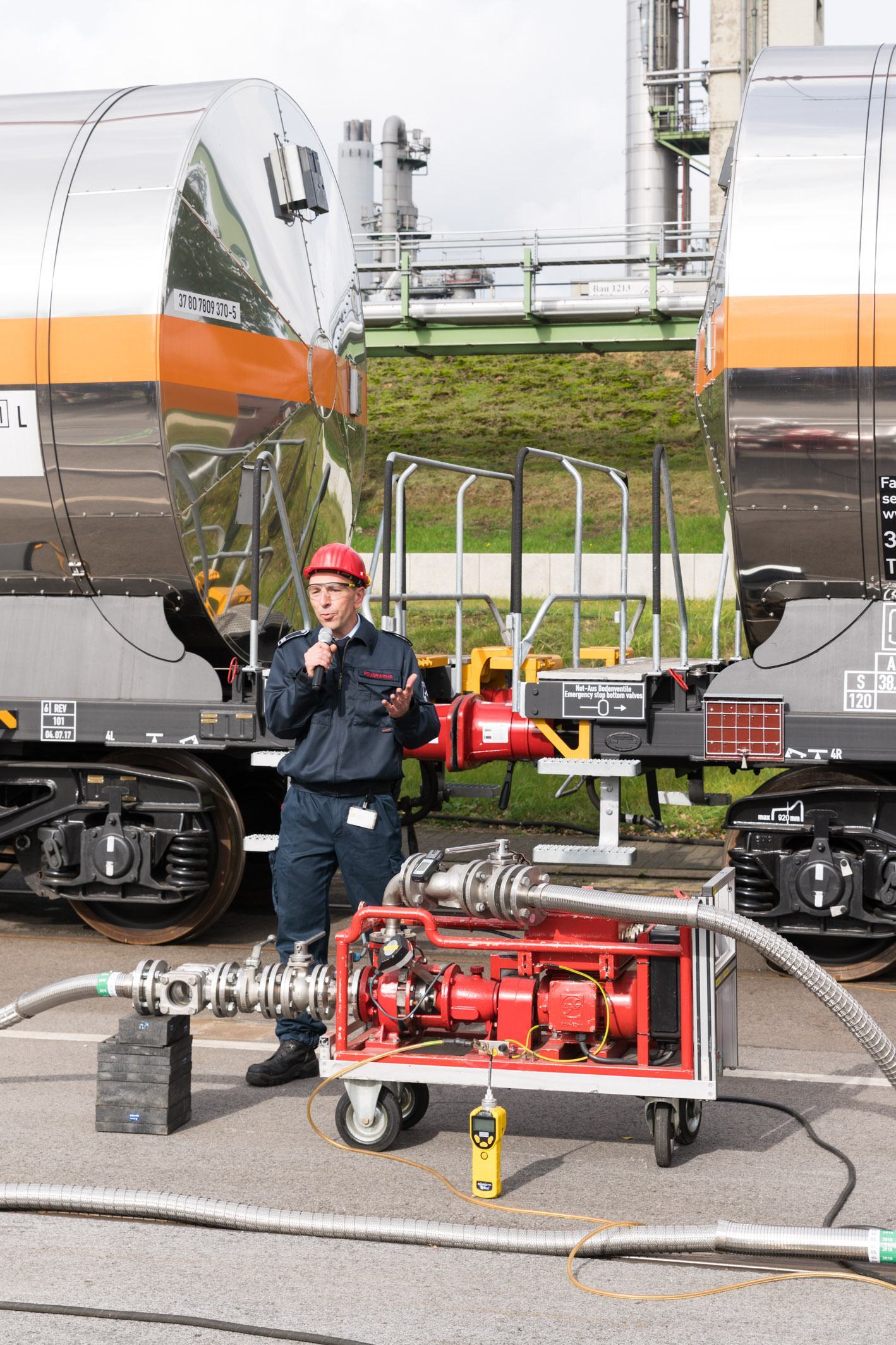 Gregor Hetzke, Vorsitzender der Geschäftsführung des Chemieparkbetreibers Evonik Technology & Infrastructure GmbH: „Sicherheit ist vor allem an unseren Schnittstellen zwischen Produktion und Transport oberstes Gebot. Ein perfektes Verständnis der Mitarbeiter für Armaturen und Sicherheitseinrichtungen im Bereich der Entleerung von Lagertanks und der Befüllung von Kesselwagen bei Güterzügen ist immens wichtig, um Produktaustritte zu vermeiden, die zu Unfällen, Umweltschäden und Störungen im Verkehrswesen führen können. Wir schulen unsere Fachkräfte deshalb fortlaufend.“